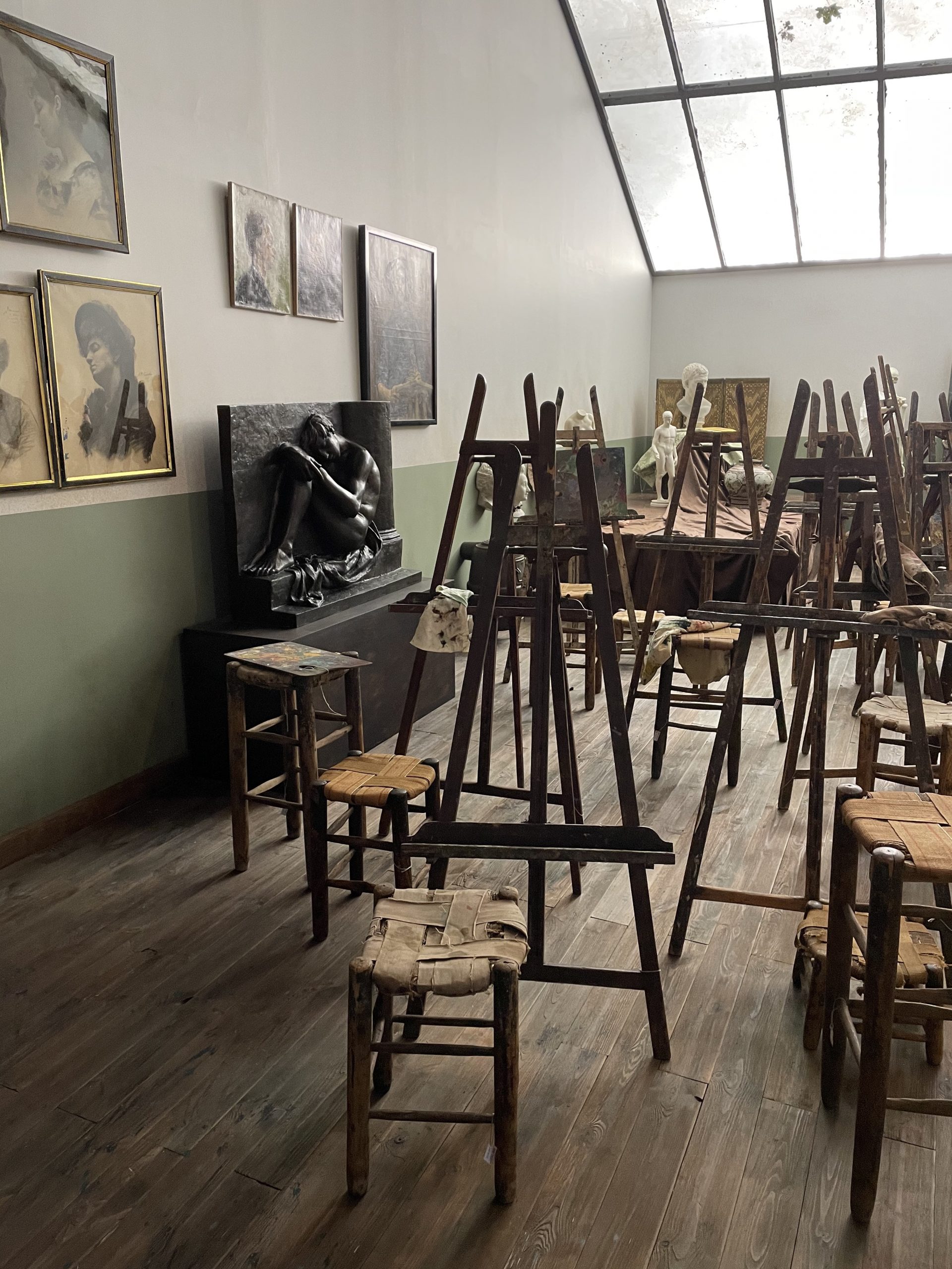 Fragment ekspozycji w MNW. Odtworzone atelier z końca XIX wieku. Sprzęty pochodzą z jednej z siedzib Academie Julian przy rue de Berri w Paryżu.