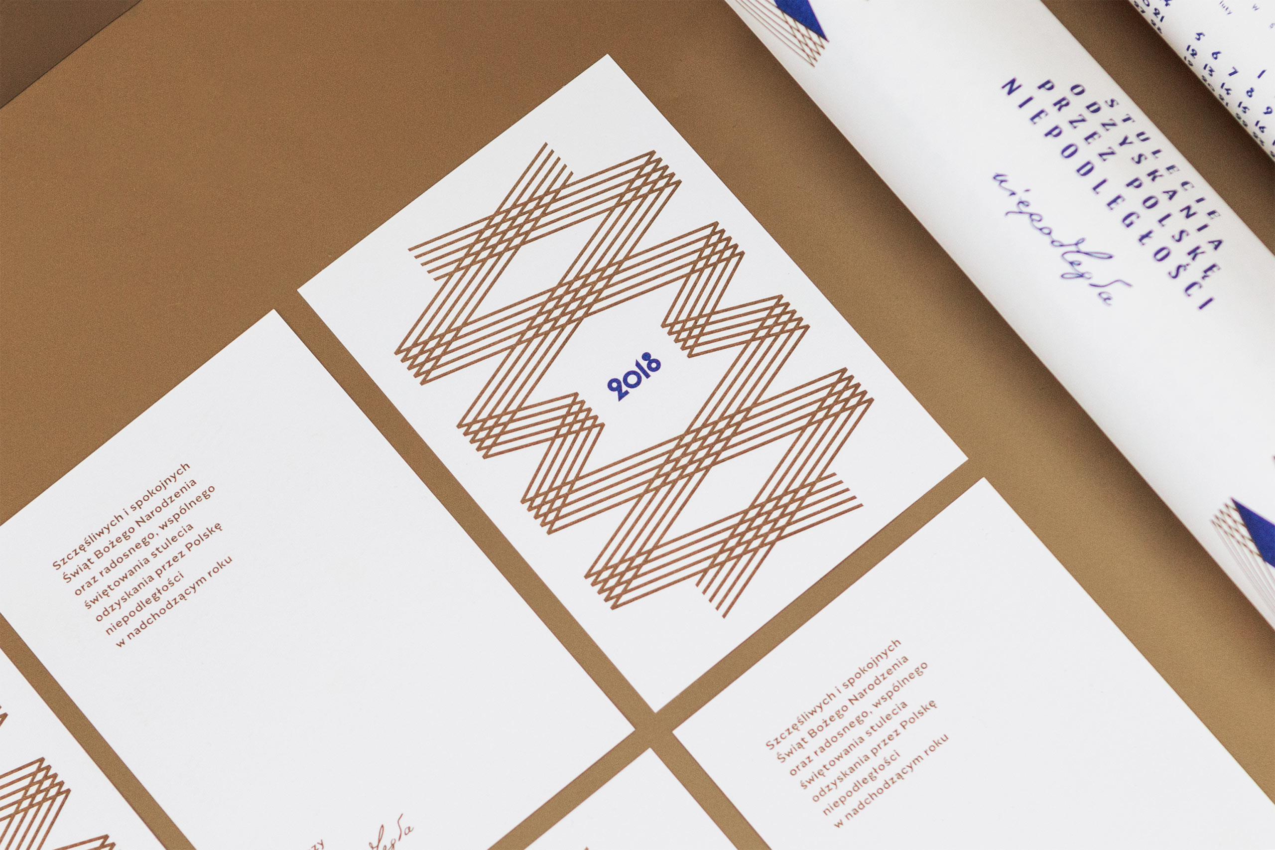 Na komplet składają się trzy elementy: kalendarz ścienny i kartki bożonarodzeniowe (wydrukowane w technologii risografii) oraz kalendarz książkowy. Publikację książkową wypełniają kolaże skomponowane z dziesiątek archiwalnych zdjęć oraz specjalnie zaprojektowanych ornamentów, których forma nawiązuje do wzorów z początków II Rzeczypospolitej. Opisy w kalendarzu są z kolei złożone fontami zaprojektowanymi przez rodzimych typografów. W dłuższych tekstach wykorzystany został grotesk Migrena projektu Mateusza Machalskiego, a w tytułach – dekoracyjny Cyrulik zaprojektowany przez Macieja Połczyńskiego w ramach akcji Warszawskie Kroje. Z kolei geometryczne cyfry występujące w kalendariach są adaptacją wzorów używanych w międzywojennej grafice. Na wyklejce znalazł się specjalnie przygotowany marmurek.