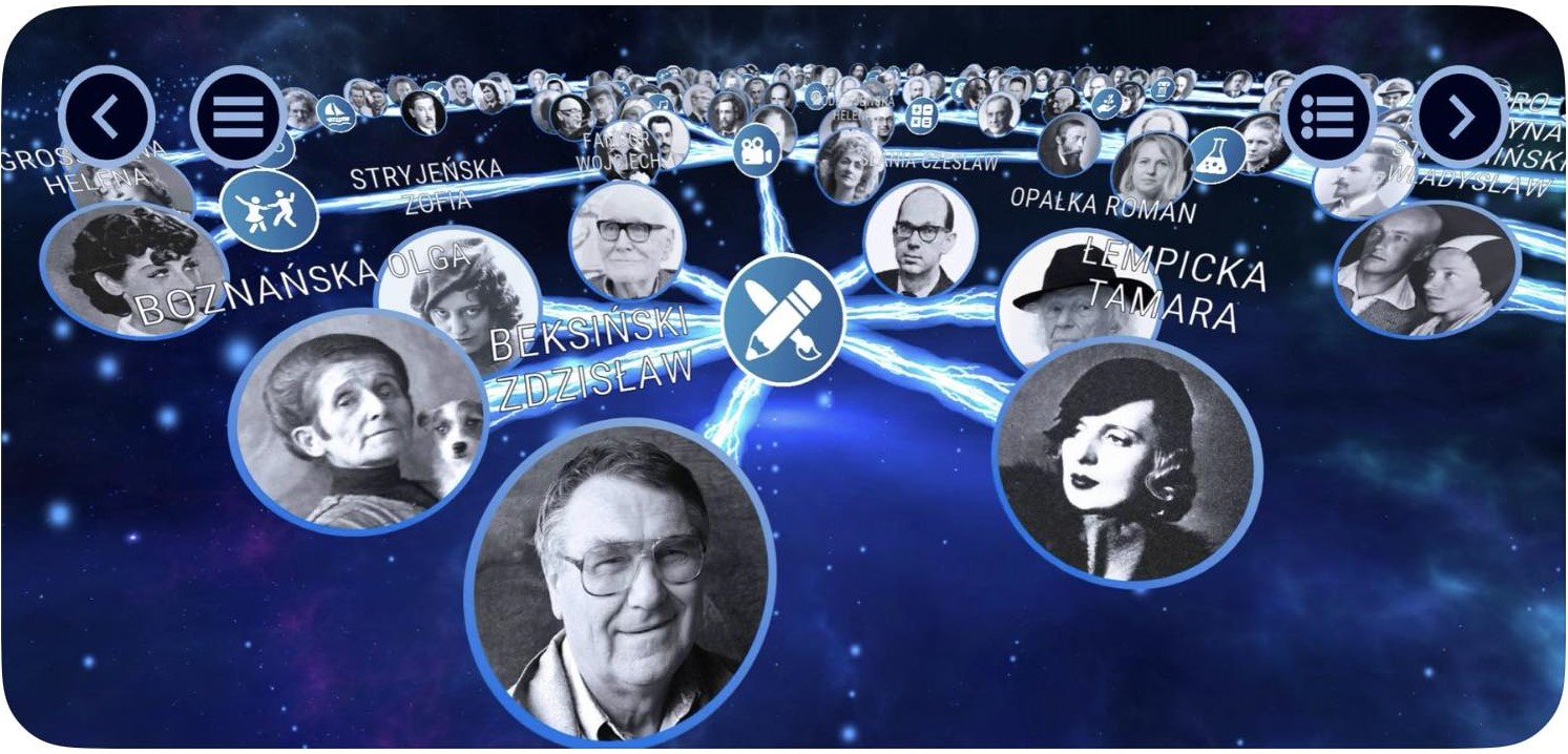 Doświadczenie wizyty w naczepie ekspozycyjnej wspiera aplikacja z rozszerzoną rzeczywistością. Można w niej znaleźć ponad 100 biogramów wybitnych Polek i Polaków, którzy zmieniali świat – od ojców niepodległości po współczesnych sportowców i odkrywców. Jednak najwięcej frajdy, zarówno młodszym jak i starszym, sprawić mogą efekty AR. Poprzez zaanimowane atrybuty bohaterów (np. biegające dinozaury, lecący myśliwiec, igloo) poznają dziesięć wyjątkowych postaci. Aplikację można pobrać ze sklepów Google Play oraz AppStore. W 2024 roku została nominowana do prestiżowej nagrody Mobile Trends Award w kategorii „Czas wolny/Rozrywka”.