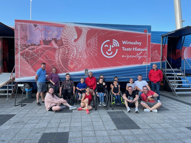 Wirtualny Teatr Historii „Niepodległa” tym razem swój przystanek miał na placu przed kołobrzeskim miejskim stadionem piłkarskim. Goście specjalni – wycieczka osób poruszających się na wózkach z opiekunami – udowodnili, że Teatr jest przystosowany do ich potrzeb. Spotkania z historią dla wszystkich odbywały się od 23 do 25 sierpnia. Mobilne muzeum ruszyło w dalszą drogę!