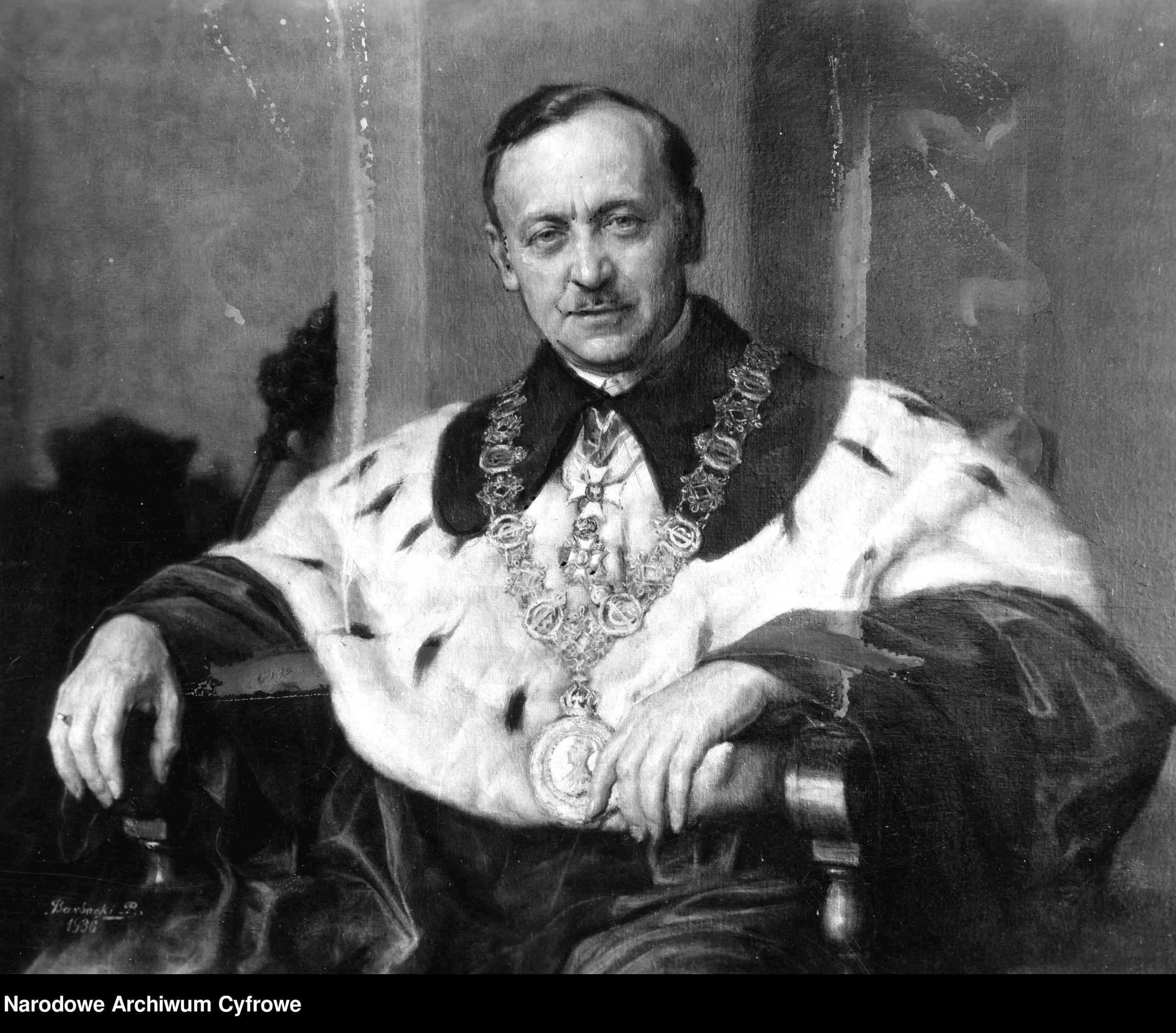 Obraz artysty malarza Bolesława Barbackiego przestawiający portret rektora Uniwersytetu Jana Kazimierza, Jana Czekanowskiego, 1934,