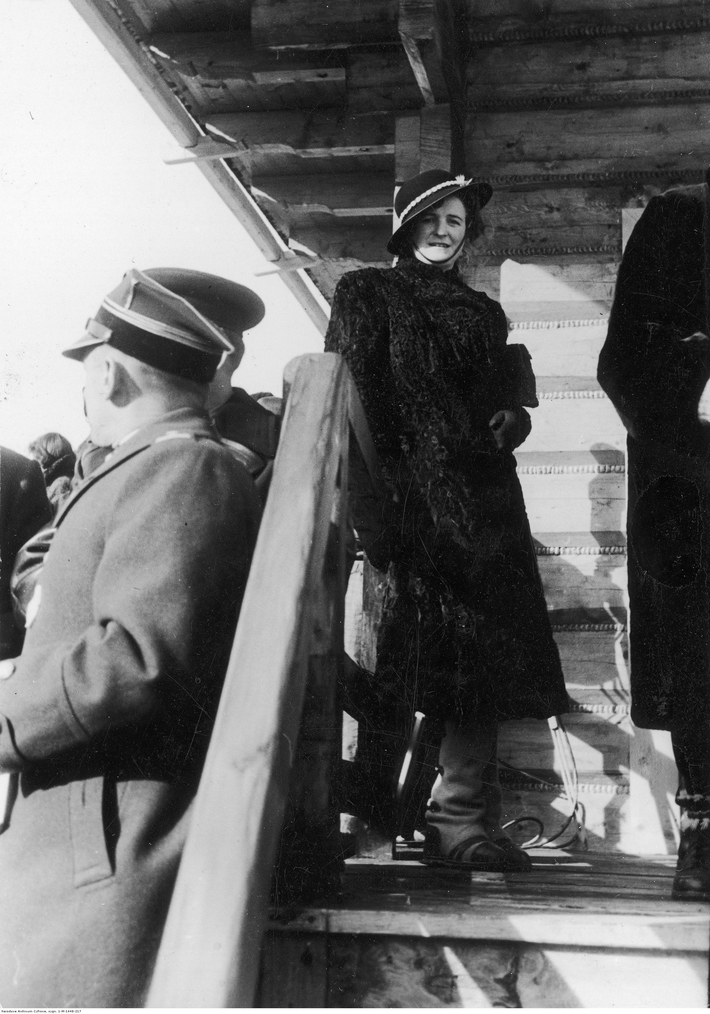 Maria Mościcka w kapeluszu góralskim podczas Mistrzostw Świata w Narciarstwie Klasycznym FIS w Zakopanem, 1939. Źródło: Narodowe Archiwum Cyfrowe