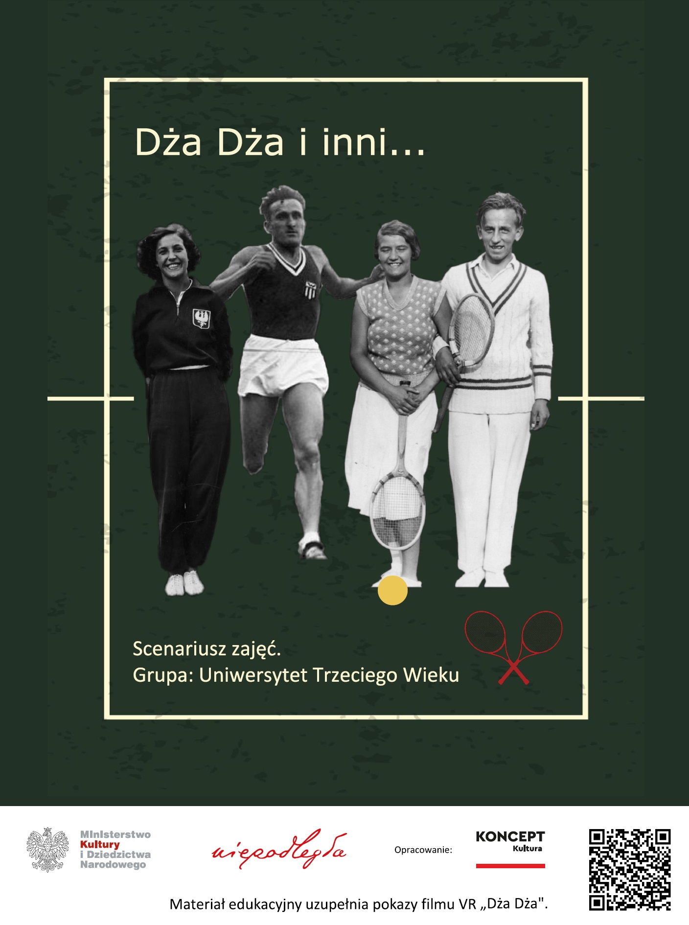 Jadwiga Jędrzejowska, to jedna z najlepszych tenisistek w historii Polski. O jej wojennych losach opowiada film VR „Dża-Dża”, który przenosi widza w czasie, na wojenny kort tenisowy. Do filmu przygotowano kompleksowe pakiety edukacyjne, które z powodzeniem pozwolą przygotować ciekawe zajęcia dla szkół podstawowych, średnich i słuchaczy uniwersytetów trzeciego wieku. Wszystkie pliki przygotowano w wersji kolorowej na rzutniki i ekrany i w wersji czarno-białej do druku. Zapraszamy do korzystania!
