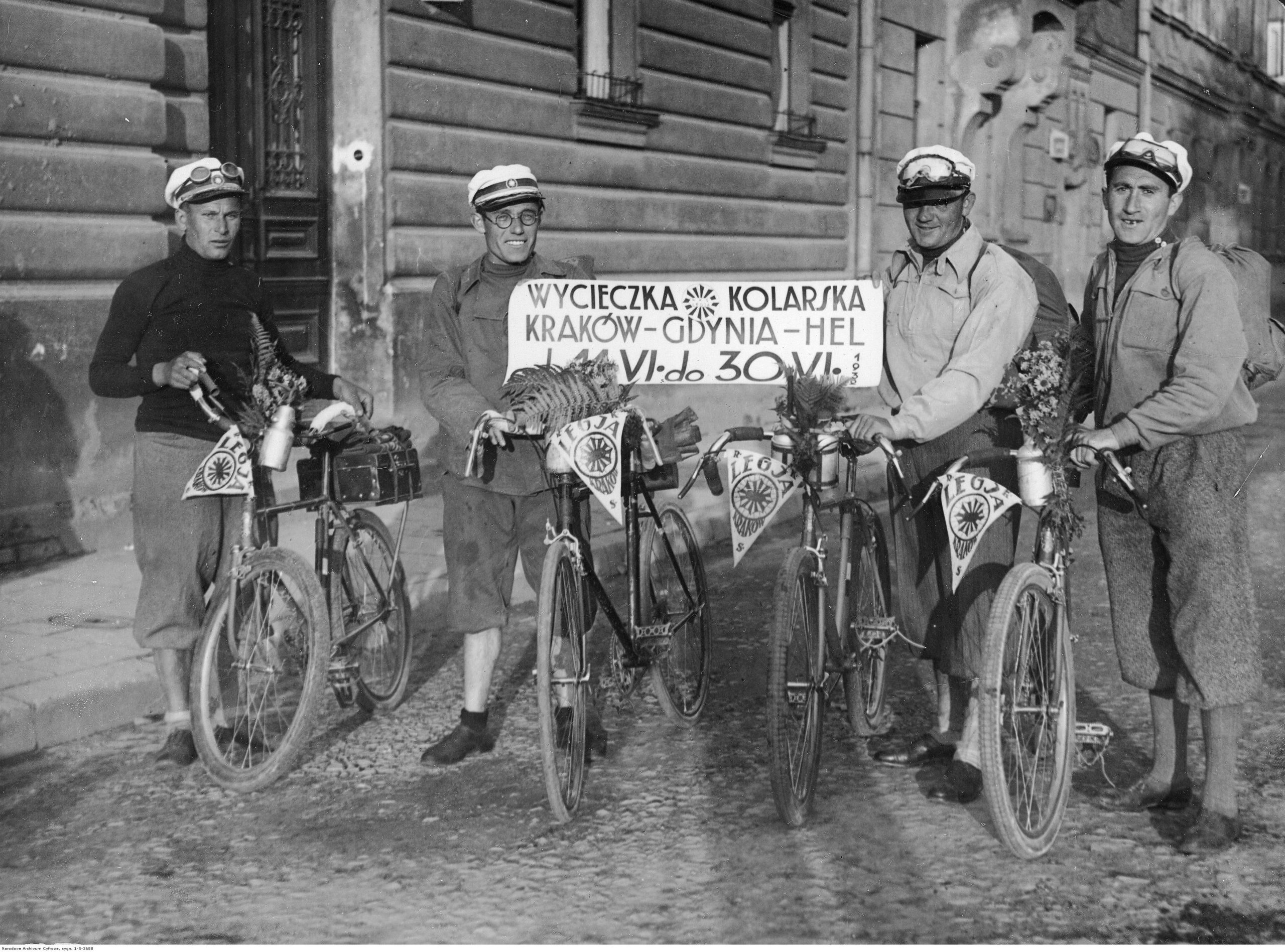 Wycieczka rowerowa turystów z Robotniczego Klubu Sportowego Legia Kraków do Gdyni i na Hel, 1932 r.